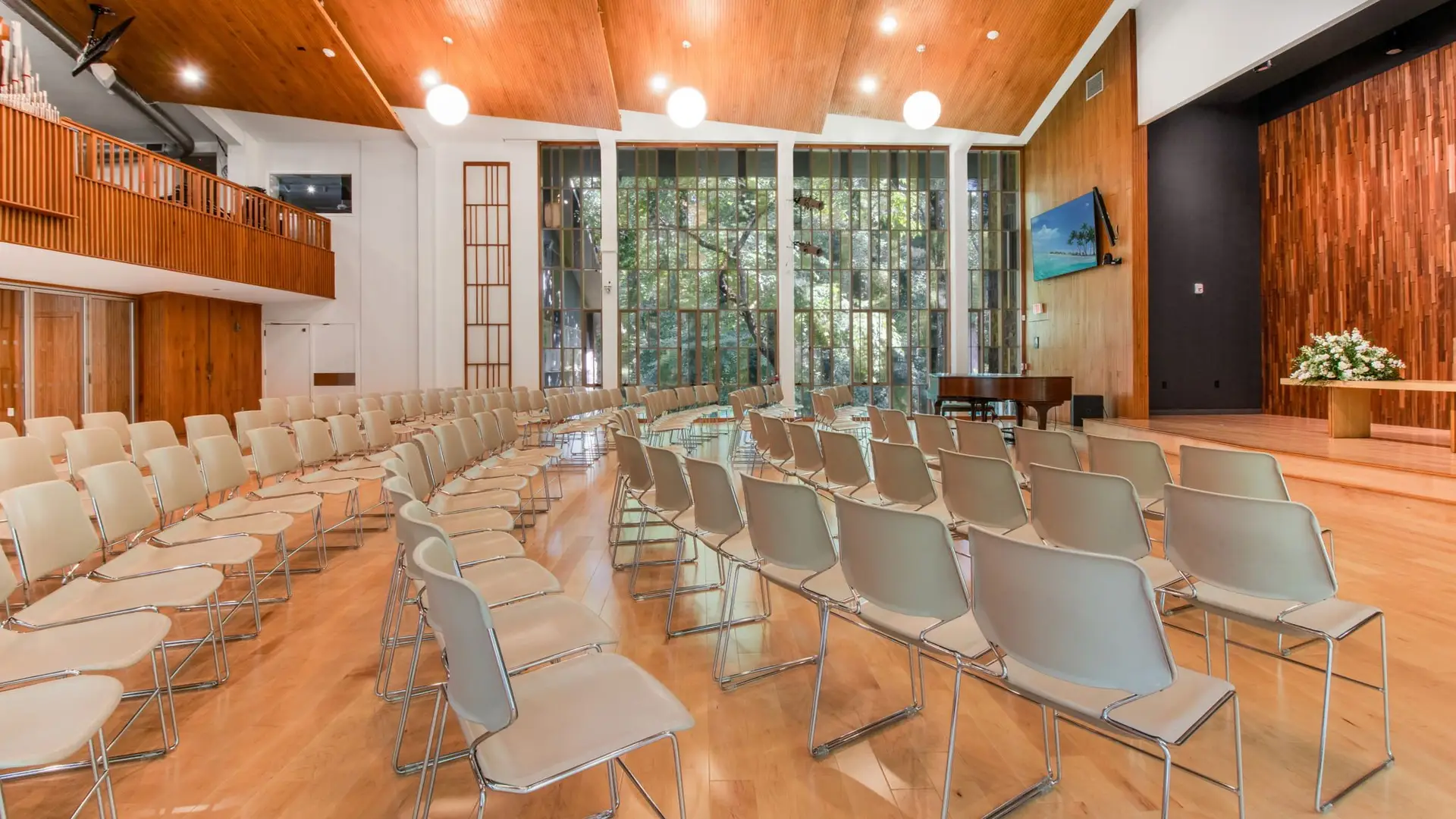 Yes! Cedar Lane has a recently installed state-of-the-art AV system in our Sanctuary. This includes on-site AV staff trained in using our audio booth and mixers, cameras and microphones, and screens to provide guests with a complete AV experience. We also offer live streaming (via Youtube and Facebook) and video recording.